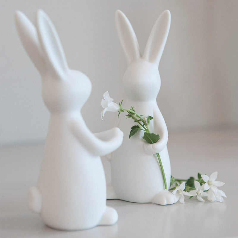 Hasen sind sicher die ikonischsten Ostersymbole. Je nach Geschmack kommen die niedlichen Figuren stilisiert oder mit Details in vielen Wohnungen zur Osterdeko hinzu. Durch ihre natürliche Ausstrahlung versprühen sie ganz von alleine eine bezaubernde Harmonie. Dabei lieben nicht nur die echten Hasen saftiges Grün sondern auch die Oster-Dekofiguren passen perfekt zu frischen Blumen und Arrangements mit Moosen und Gräsern. Je nachdem welches Material Du für die Dekohasen auswählst, kannst Du verschiedene Akzente setzen. Die Figuren aus Keramik bringen Eleganz mit während die Hasen aus Keramik und Metall oder aus Holz etwas rustikaler wirken. Im Zusammenspiel mit Deiner Einrichtung und anderen Dekoelementen gelingt so immer eine wohnliche und zeitgemäße Atmosphäre.