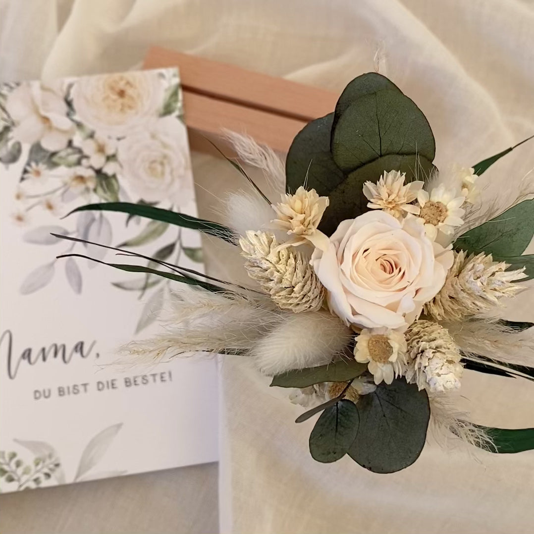 Geschenkset zum Muttertag mit Grußkarte und Trockenblumenstrauß